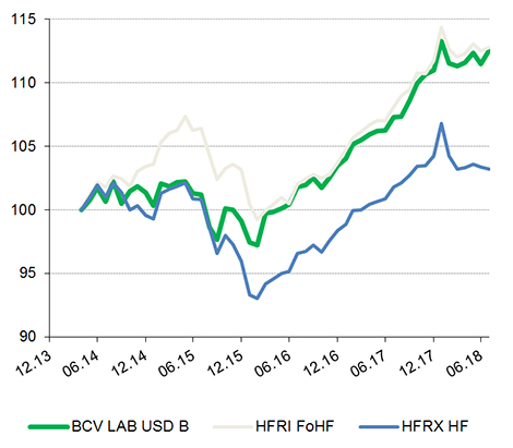 Lancé en mai 2014, le fonds BCV Liquid Alternative Beta (LAB) pèse désormais près de 300 millions de francs et jouit d’un intérêt grandissant de la part des investisseurs institutionnels. Les hedge funds seraient-ils redevenus attractifs dans l’environnement actuel? Et ce véhicule est-il une réponse adaptée aux besoins des investisseurs encore réticents à investir directement dans les hedge funds? Le point avec Miguel Tiedra et Philippe Pillonel, co-gérants du fonds.