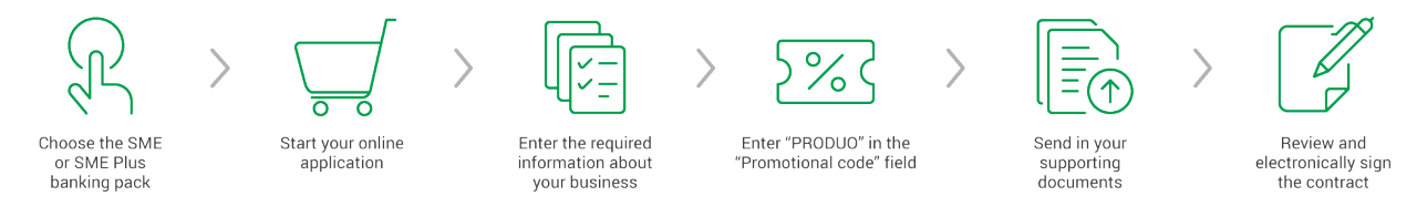 When you apply for an SME or SME Plus banking pack online, you’ll get a 30% discount on the pack’s flat fee if you already have a personal banking pack with BCV or if you open one at the same time (in which case you must indicate that you’re interested in the PRO Duo offer when applying for the business banking pack).