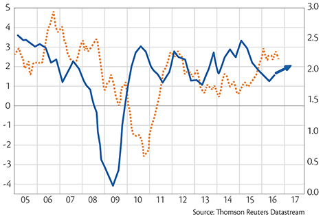Quelles surprises nous réserve 2017? Au vu des seuls indicateurs économiques, l’année qui vient permet un certain optimisme. Sur la bonne voie vers ce qui pourrait ressembler à une normalisation graduelle, l’économie mondiale est pourtant sous la menace d’un certain nombre de risques. Ce qui ne nous empêche pas d’opter pour un scénario constructif. La croissance de l’économie mondiale devrait s’afficher à 3,3% contre 3,1% en 2016. Elle devrait davantage accélérer dans les pays émergents (4,5% contre 4,1%) que dans les pays développés (1,8% contre 1,7%).