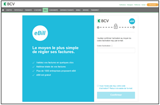 eBill - Activer eBill dans BCV-net et BCV Mobile