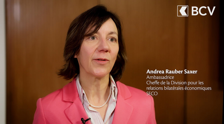 «La Suisse doit être créative, elle doit être partout» Invitée dans une manifestation de la BCV, Andrea Rauber Saxer, cheffe de la Division pour les relations bilatérales économiques au SECO, a rappelé que la Suisse avait des atouts en main pour défendre sa place dans le commerce mondial. Ses explications. Suite